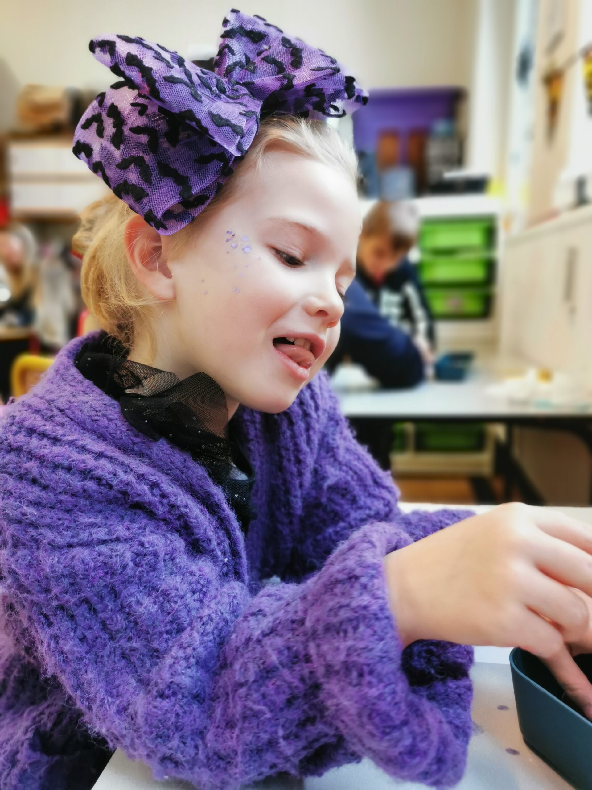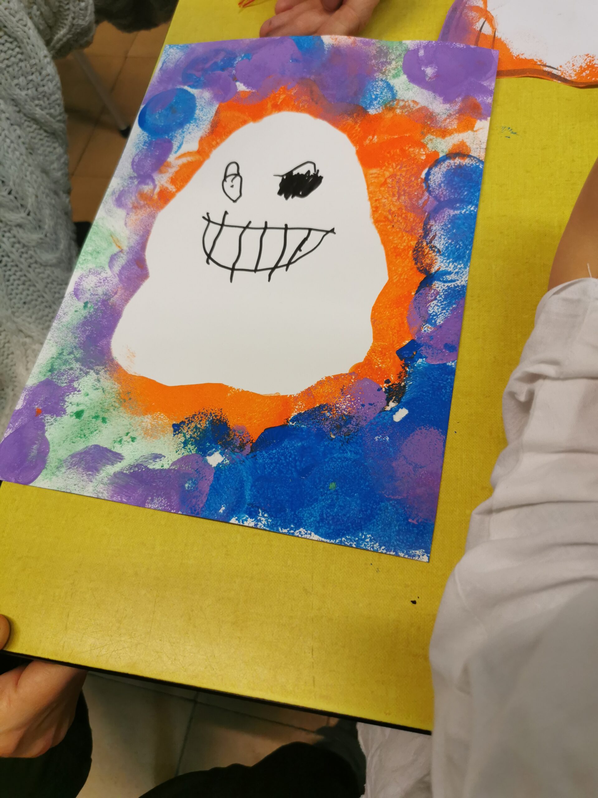 Ce mardi matin, les épouvantails des classes maternelles ( les institutrices, vous l’aurez compris!) ont préparé des ateliers sur ce thème effrayant: sorcières, fantômes et effluve de soupe au potiron sentait bon dans les couloirs d’en bas!
